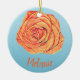 This exquisite watercolor of a delicate peach-colored rose, set against a soft blue background, captures the timeless beauty of nature with grace and elegance. The warm peach tones of the rose, a symbol of sincerity, friendship, and gratitude, make it a heartfelt gift for someone special. The contrast between the pastel orange peach bloom and the serene blue backdrop creates a striking, yet serene image that radiates both femininity and strength.
