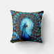 Peacock Among Blue Flowers Throw Pillow