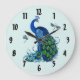 Peacock and Dragonfly Round Clock Design