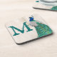Peacock Bird Feather Teal Monogram Drink Coaster