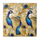 A beautiful seamless repeating pattern comprises of beautiful blue and gold peacocks that have their crests up. They are framed by peacock feathers and a golden swirl art nouveau inspired line background on white and pale sea foam green. This luxurious and modern design is ideal for hotels, resorts, villas, lodges and penthouse apartments that want to add a touch of style to their walls. Suited to kitchen backsplashes, bathrooms or just as an accent touch to a table top, This generative content 3D (three dimensional looking) graphic is sure to wow your guests.