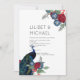 Peacock Blue Burgundy Winter Fall Wedding Budget Invitation