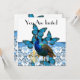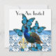 PERSONALIZE this elegant sophisticated peacock bird and blue butterflies, on a vintage blue and white damask, design for your wedding, anniversary, birthday or any event or occasion, with your own text.
