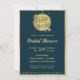 Peacock blue gold disco ball bridal shower invitation