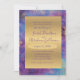 Peacock Blue Purple Abstract Gold Wedding Invitation