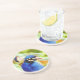 I'm not sure how much moisture these will soak up, haven't had a chance to try them out, but they look good and I like the cork backing. The printing is fine ~ and really looks cool with an artisan's hand made "Hurricane Martini" glass sitting on top of my painting (on the coaster) in my studio.