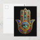 Peacock Color Flower Petals Hamsa Green Third Eye Postcard