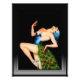 The Peacock Dancer is a beautiful and flamboyant Art Deco illustration of a female dancer wearing a peacock dress, dancing it up against a black background.