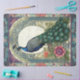 Elegant Peacock in a botanical vintage style with ephemera & Art Nouveau borders for Decoupage. A bright and colorful painting of an elegant Peacock in bold shades with a crackle distressed texture including salmon pink and lavender pink flowers. Art graphically designed by internationally licensed artist and designer, Audrey Jeanne Roberts. Copyright.