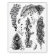 This set of temporary tattoos contains nine individual black peacock feather silhouette designs.