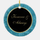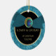 This beautiful first Christmas together ornament features an elegant peacock feather golden button on a satin ribbon graphic. Easily customized.