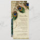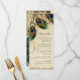 COLOR PALETTE: cream, tan, cream, royal blue, green, and rust. DESIGN: Matching Dinner Menu Card. The bride and groom's names and wedding date are on the front of this design. This antique vintage inspired wedding collection has a complete ensemble of products and can be created in several colorways. If you would like it to match your wedding let us know via email and we'll be happy to assist you. This design consists of a stately peacock on a tree branch vintage art element layered three peacock feathers and over an angel etching, swirls, antique handwriting, hand painted lace overlaid on parchment and a beautiful original art damask pattern. The background color can be changed to match your wedding.