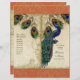 PAPER SELECTION: This will arrive flat and unfolded. You will need to fold it in half. Most print shops will do this for a very nominal fee, or you can do them yourself. Unless you are planning to have a profession print shop score and fold this DO NOT ORDER the card stock upgrade. Order it as it is set up on standard paper. COLOR PALETTE: orange, tan, cream royal blue, green, and rust. DESIGN: Matching RSVP Response Card. There is a hand lettered calligraphy font RSVP on the front of this design. This antique vintage inspired wedding collection has a complete ensemble of products and can be created in several colorways. If you would like it to match your wedding let us know via email and we'll be happy to assist you. This design consists of a stately peacock on a tree branch vintage art element layered three peacock feathers and over an angel etching, swirls, antique handwriting, hand painted lace overlayed parchment and a beautiful original art damask pattern. The background color can be changed to match your wedding.