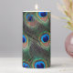 Accent your home with this 3 x 6 inch, wax pillar candle that features the photo image of a colorful Peacock feather eyespot pattern.