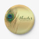 Peacock Feather Gold Exotic Boho Chic Custom Party Plates. Make the background any color.