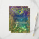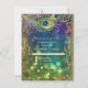 Matching RSVP Response Card with simple menu choices. This design is made with hand painted watercolor peacock feathers adorned with graphically designed diamond jewels (NOTE: this is a flat printed invitation there is no actual jewels, gold glitter or metallic foil or ink used) over a colorful bokeh sparkle, twinkling lights background in deep, rich purple, blue, aqua and green. Easily change out your text using the template fields provided. Art by internationally licensed artist, Audrey Jeanne Roberts, copyright.