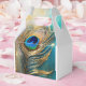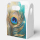Peacock feather luxurious plume teal white favor boxes