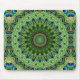Peacock Feather Mandala Emerald and Blue Symmetry Mouse Pad