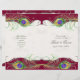 This wedding program will need to be folded when you receive it, it's shipped as a flat sheet. I would recommend taking it to a print shop and having them score and fold it for you for what is generally a very nominal cost. There is a second (interior) page available to match if you need a longer program. Simply fold the two together and have a printer "saddle stitch staple" them for you or leave them unstapled if you prefer. COLOR PALETTE: red burgundy, grey, green, purple and blue (peacock feathers). DESIGN COLLECTION: This original artwork has been design for a modern and contemporary wedding collection. There is a complete ensemble of products and can be created in several colorways. If you would like it to match your wedding let us know via email and we'll be happy to assist you. This design consists of a hand painted leaf swirl scroll border with a pair of original art peacock feathers overlayed on a "velum" look background. The background color is easily changed to match your wedding. Easily personalized via the template field. Just enter your name for custom stationery to use for business, wedding or thank you correspondence. YOU MIGHT ALSO ENJOY: SQUARE INVITATIONS: