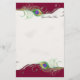 This original artwork has been design for a modern and contemporary wedding collection. There is a complete ensemble of products and can be created in several colorways. If you would like it to match your wedding let us know via email and we'll be happy to assist you. This design consists of a hand painted swirl border with a pair of original art peacock feathers overlayed on a "velum" look background. The background color is easily changed to match your wedding. Easily personalized via the template field. Just enter your name for custom stationery to use for business, wedding or thank you correspondence.