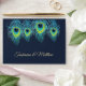 Peacock Feather Navu Blue Gold Wedding Envelope