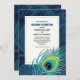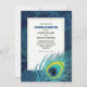 Peacock Feather Navy Blue Gold Wedding Invitation