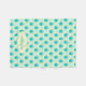 A bright peacock feather oval patterned teal aqua, blue green blanket. Personalize with your own name and initial currently reads Monica R. Designed by Sarah Trett.