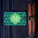 © Socialite Designs. Tag your luggage with this modern, moogram peacock feather pattern personalized luggage tag. The back area incorporates a name and address, however, you can delete the address and just keep your name and any other text you wish to add that does not identify where you live. Teal background color can be changed by pressing "Customize it" button and choosing "Edit - Background".