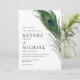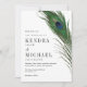 Plain white envelopes are included with paper invitations and will come to fit the invitation size you select. If you don’t need the envelopes, you may choose to not receive them by selecting the dropdown below "Envelopes" and choosing "None." If you’d like to have a design on your envelopes, you can browse all of these available envelopes to find the design that complements your Peacock Feather Poise Green Back Wedding Invite.