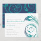 Modern and unique Invitation in Peacock inspired hues. Colors shown: Light Gray, Teal and Navy. Feather pattern background continues on the backside (print additional RSVP or travel information on the reverse).