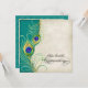 Peacock Feather Teal Blue Damask Quinceanera Party Invitation