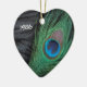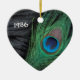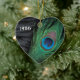 Unique peacock feather Christmas Ornament with a customizable year. The black velvet background of the still life makes the bright colors of green and blue of the peacock feather looks absolutely vibrant and stunning. If you're decorating with a Peacock Christmas Theme this year this is beautiful.