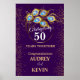 Elegant dark purple and gold 50th wedding anniversary invitation with gold ring and peacock feathers, change all the text yourself to any anniversary or occasion. This sign will easily convert to the 20 x 30 and 24 x 36 inch sizes.