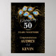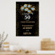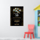 Elegant black and gold 50th wedding anniversary invitation with gold ring and peacock feathers, change all the text yourself to any anniversary or occasion. This sign will easily convert to the 20 x 30 or 24 x 36 inch sizes.