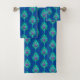 Peacock Feathers, Aqua on Deep Cobalt Blue Bath Towel Set