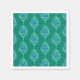 Paper napkins in a peacock feather textile print, executed in Adobe Illustrator an Photoshop - light aqua / seafoam feathers, with an eye in shades of cobalt blue, lime green, turquoise and white, on a deep turquoise / peacock background