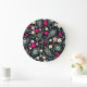 Peacock Feathers Embroidery Seamless Pattern Large Clock