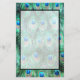 Stationery with a brightly colored pattern of exotic and wild peacock feathers in pretty teal, jewel green, aqua and cobalt blue. A semi-tranparent overlay placed over top for legible writing. Artistic and fancy, created with watercolors. A chic and stylish design.