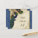 "Peacock Feathers Formal Wedding Table Numbers Card." COLORS: horizon blue, tan, cream navy blue, green, and rust. DESIGN: Matching Table Number Seating Card. The table number cards are the same design front and reverse. This antique vintage inspired wedding collection has a complete ensemble of products and can be created in several colorways. If you would like it to match your wedding let us know via email and we'll be happy to assist you. This design consists of a stately peacock on a tree branch vintage art element layered three peacock feathers and over an angel etching, swirls, antique handwriting, hand painted lace overlayed parchment and a beautiful original art damask pattern. The background color can be changed to match your wedding.