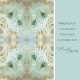 One of a pair of images, LEFT side version for matching doors. You can rotate these 180 degrees to create a four panel mirror pattern. A coordinate pattern for one of Audrey Jeanne's most loved paintings now available in tissue paper to decoupage! These peacock feathers are set amongst elegant gold foil gilded scrollwork, peacock feathers and a grayed blue background. Painted in oil pastel by internationally licensed artist and designer, Audrey Jeanne Roberts, copyright.