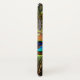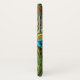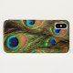 An iPhone X Case with a photograph of some detailed beautiful peacock feathers.