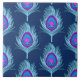 Peacock Feathers, Navy and Pastel Blue Ceramic Tile