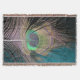 Peacock Feathers on black and turquoise Throw Blanket