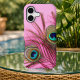 Beautiful, pink iPhone case with colorful peacock feathers close-up. Gives protection and lovely decoration for your smartphone, but also makes a great gift for trendy girls.