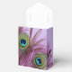 Elegant party favor box with beautiful peacock feathers over violet background. Great for peacock feather themed weddings, bridal showers, birthdays and other special occasions. If you need any help with this design, feel free to contact me.