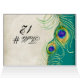 This is a contemporary, sophisticated table number tent card. I have set this up so that you can type in your table # and order them one card at a time. Also, I've set them up so that you can either use them the way they are shown which gives you a minimal print space on the back side, or simply turn them inside-out and refold them so that you have full images front and back. Featuring stylized, hand watercolored Peacock feathers, on a handpainted lace and parchment background with your choice of background border color, shown here in peacock teal blue. YOU MIGHT ALSO ENJOY:All items available in any color you desire, just email us and we'll be happy to help! COMPLETE COLLECTION AT:http://www.zazzle.com/audreyjeanne/gifts?cg=196290129138184832 INVITATIONS: