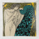 Peacock Bird - This beautiful art nouveau image is an early 20th century fine art print showing a peacock and a figure, with stylized design. Fine art print painting artwork.