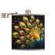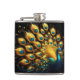 Peacock flaunting blue and yellow plumage flask