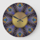 Fractal art that looks like a cross between peacock feathers and spider web in Indigo blue, purple with gold + brushed gold centre circle to enhance the clock hands plus also perfect space for you to personalize with text, if you wish