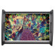 Features a purple, blue and gold peacock with a colorful kaleidoscope effect. A boho design Featuring many other brilliant colors such as orange, yellow, turquoise and green.